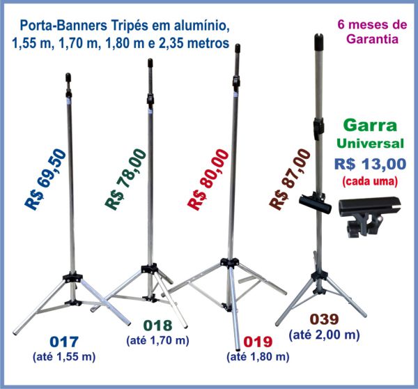 Produtos garantidos. 06 meses para Porta-Banners tripés.